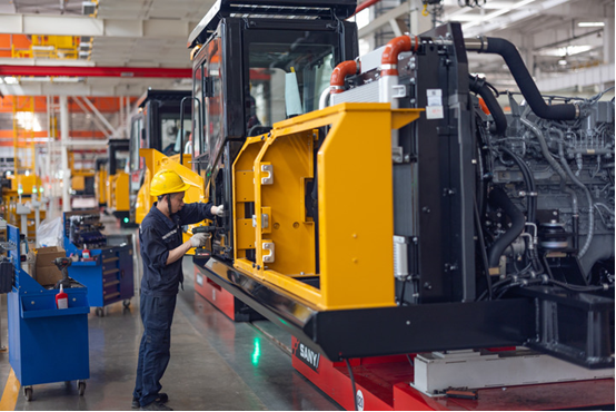El 21 de abril de 2025, en una empresa de fabricación de maquinaria ubicada en el nuevo distrito de liangjiang, chongqing, el personal ensambló excavadoras que se exportarán a Laos y Myanmar en el taller de montaje final. (foto del reportero de la Agencia de Noticias Xinhua Huang wei)