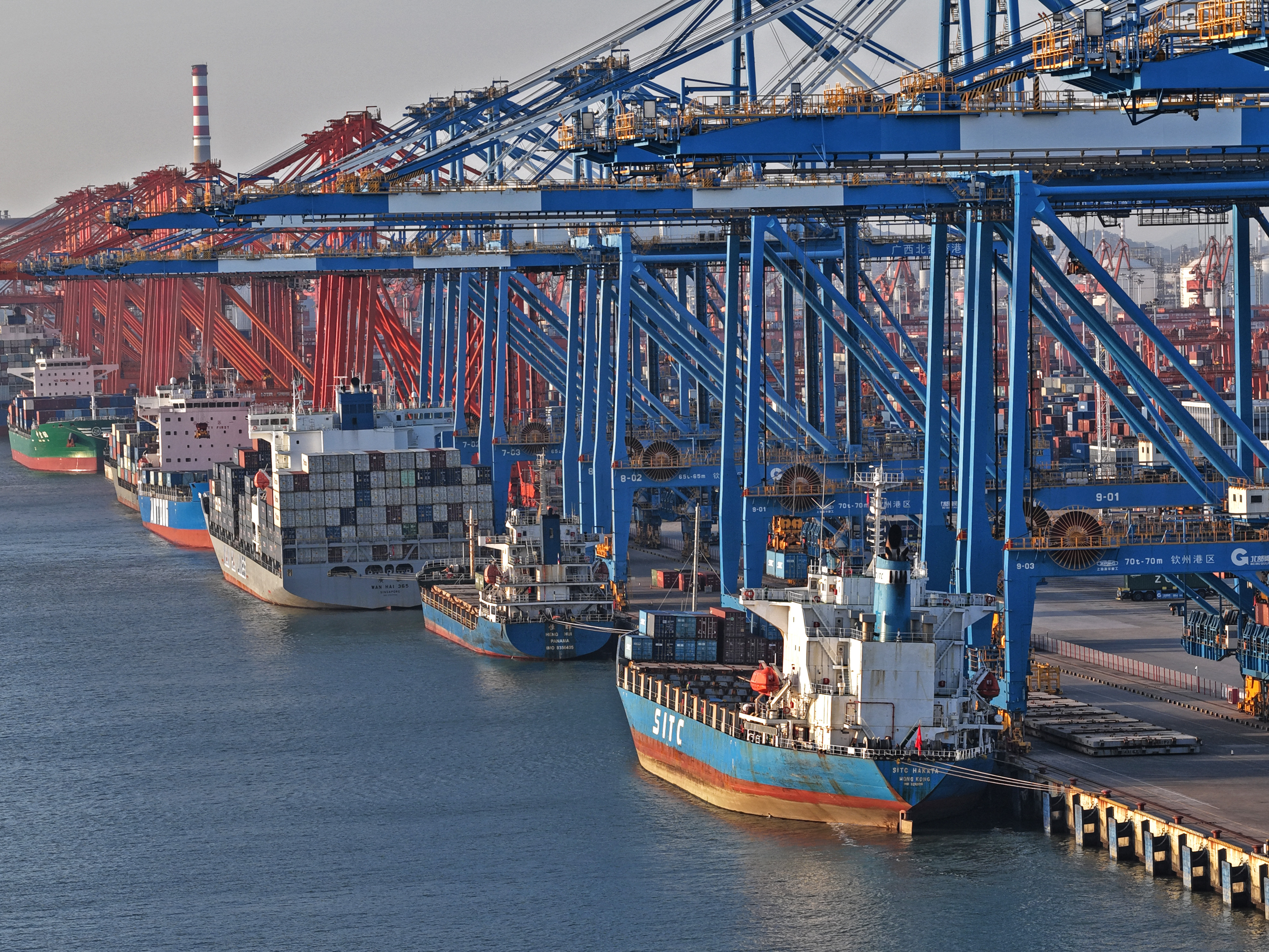 This is the busy Qinzhou Port Area in Beibu Gulf, Guangxi (taken on November 12th, drone photo).